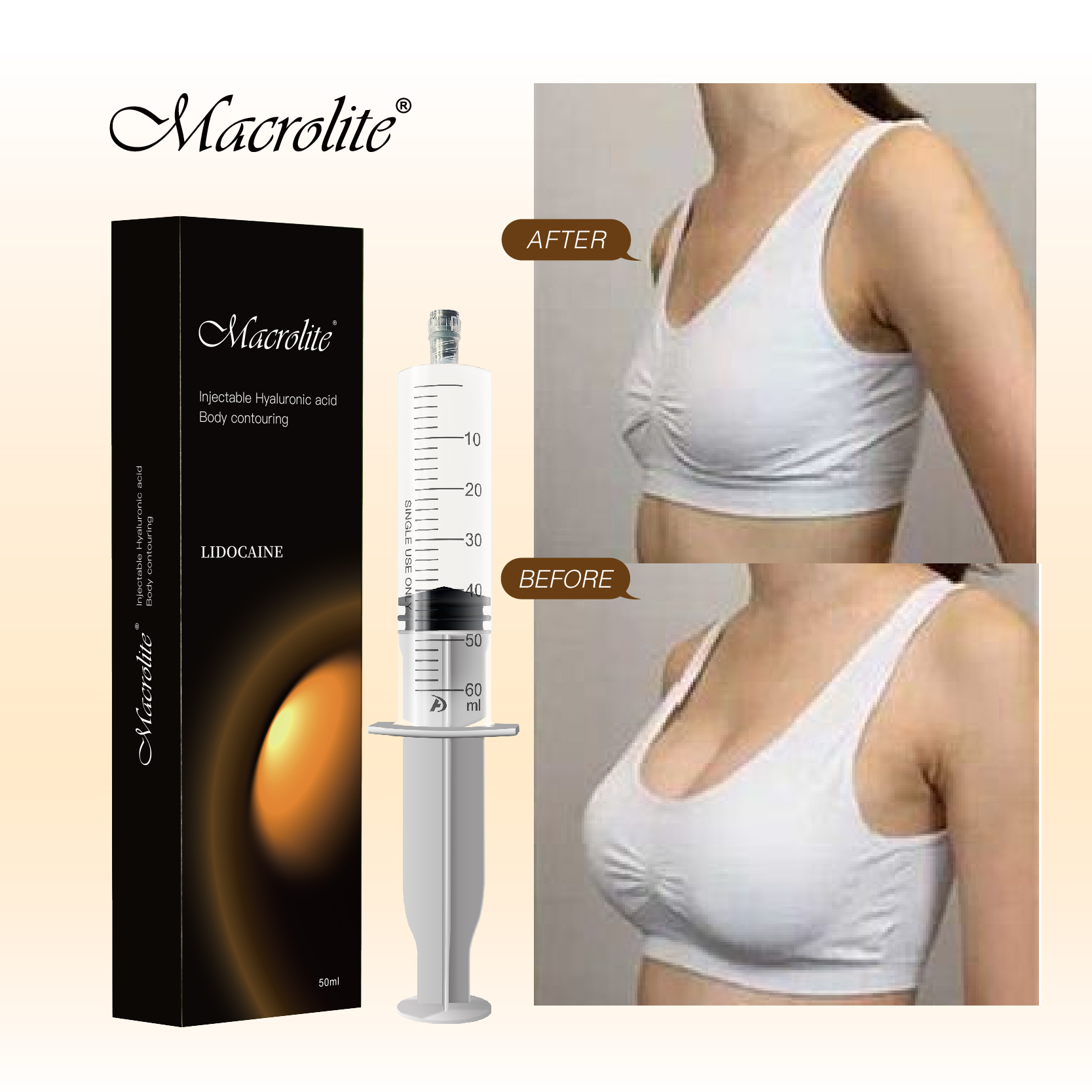 No todos los ácidos hialurónicos son aptos para tratamientos corporales, y mucho menos para el aumento de senos. Dentro de los rellenos corporales disponibles en el mercado, Macrolite® ácido hialurónico corporal destaca como una opción ideal para procedimientos de aumento y remodelación de senos sin cirugía.
